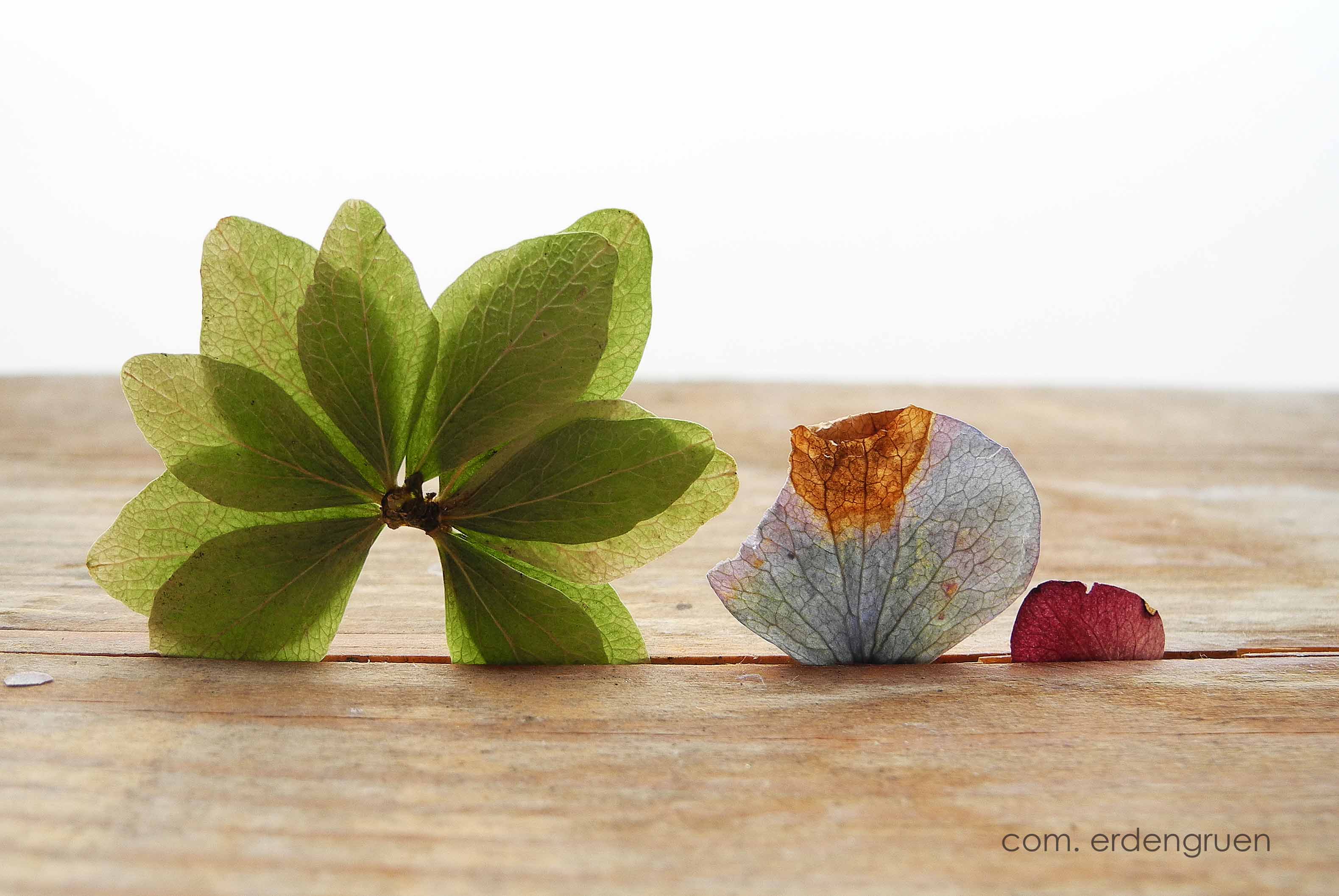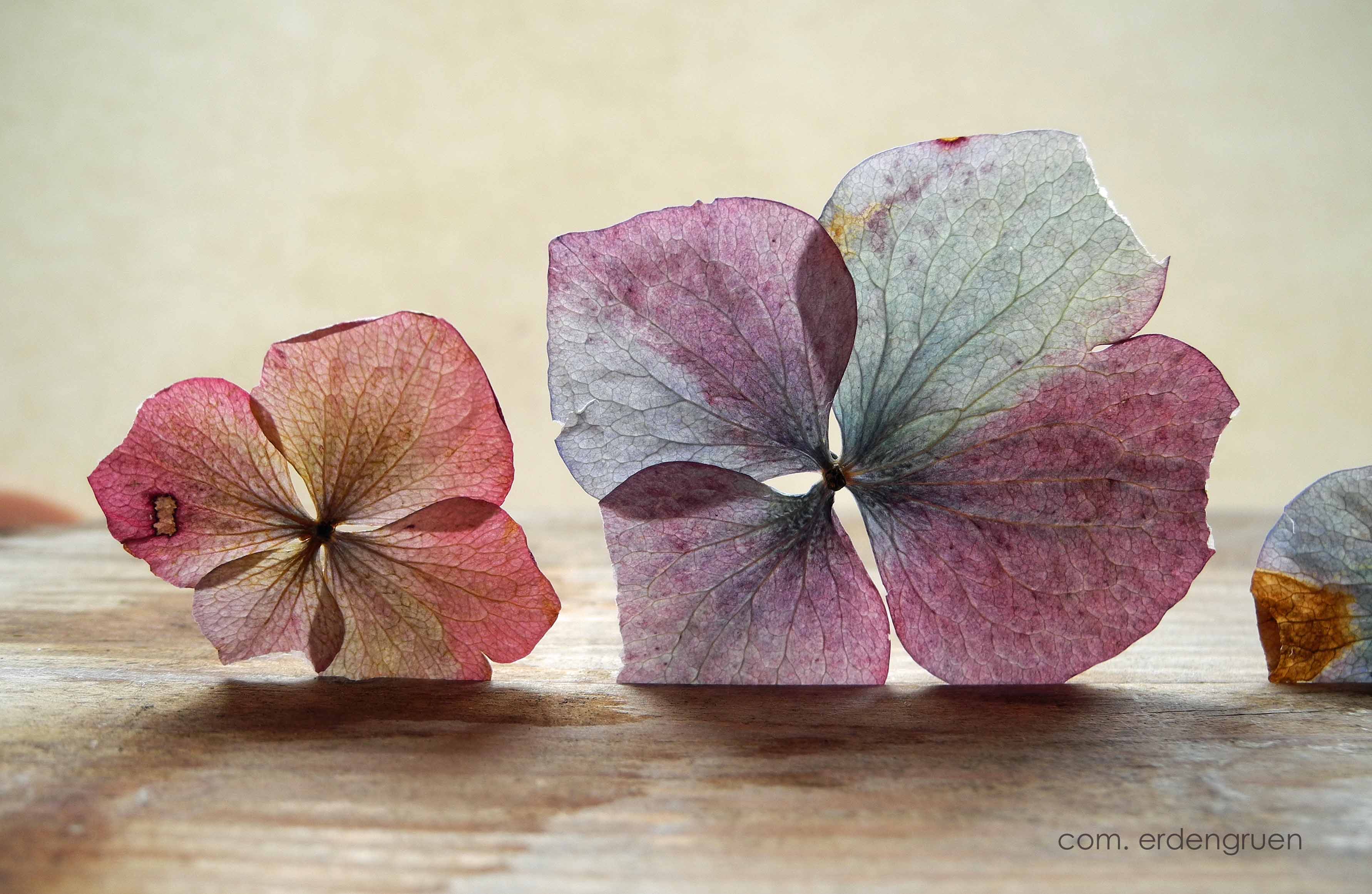 Im Herbst wimmelte es im Garten Blüten. Hortensien wohin ich auch schaute. Sie speichern das Licht und die Farben des Sommers. Sie schlafen zwischen den Seiten der dicken Bildbände über Asien und vergessene Künste. Jetzt im Januar mache ich sie wach.